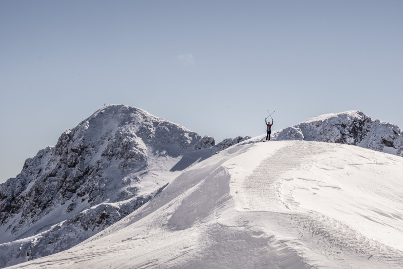 Eine Skitourengehern grüßt von der Edelgrießhöhe.