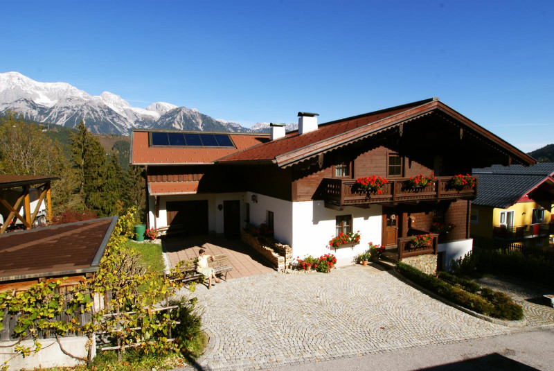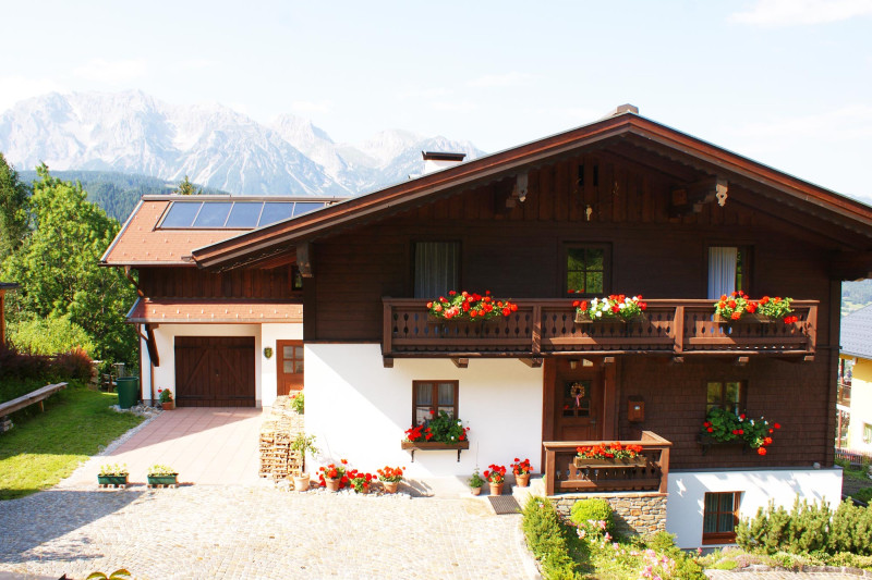 Das Haus Talblick wurde in den Jahren 1948-1949 von Willi’s Eltern – Willi sen. und Theresia Pilz – erbaut und im Jahre 1978 von Willi und Anneliese erweitert. Im Jahr 1987 begann Anneliese mit der Vermietung des Appartements, welches sich in diesem Zubau befindet. Das Haus Talblick liegt gut erreichbar ca. 15 Gehminuten von Schladming bzw. dem Ortszentrum von Rohrmoos entfernt. Die Ferienwohnung punktet mit der ruhigen, straßenabgewandten Lage und dem herrlichen Ausblick auf das Dachsteinmassiv und die Bergstadt Schladming.